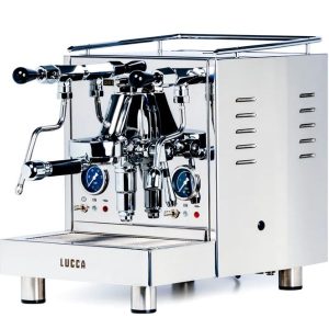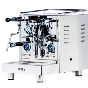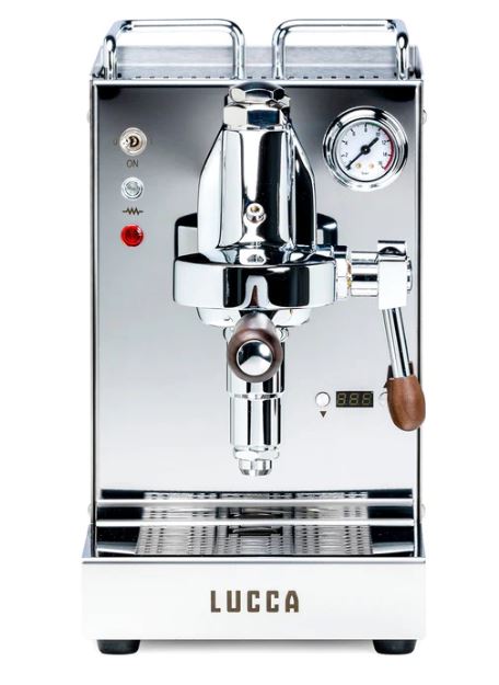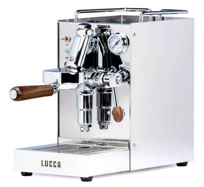 Discover the LUCCA Solo espresso machine, the latest and most compact addition to the LUCCA lineup. Crafted by Clive and produced by Quick Mill, this E61 single-boiler machine is perfect for espresso enthusiasts who value uncompromising quality. The precise PID temperature control ensures optimal brewing conditions. Featuring a sleek design with black and stainless steel finishes and elegant walnut accents, the Solo combines beauty with durability. Plus, it’s available with flow control for enhanced brewing precision!