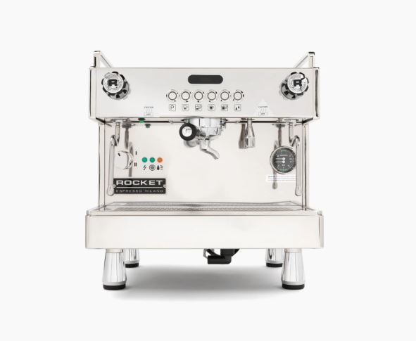 The Rocket Boxer Timer commercial espresso machine brings compact capability to your coffee shop. Its simple heat-exchanger design offers excellent volume for its size thanks to its outsized steam boiler.